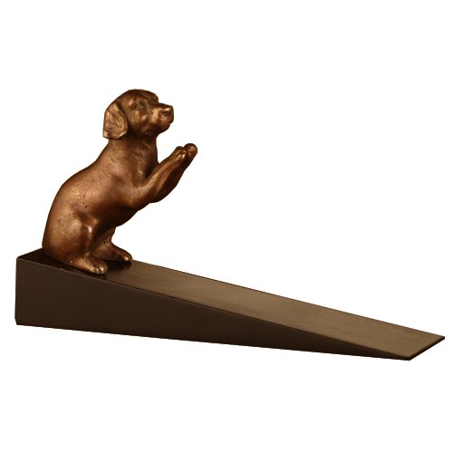 This darling Labrador retriever would love to run and play with you, but he is too busy with your door! This doorstop measures 3.5 inches high, 6.5 inches wide, and 1.5 inches deep. The wedge-shaped wood base holds that door in place, and the felt bottom helps prevent skidding and slipping. The Aardvark does have a tennis ball with him, just in case. Imported.