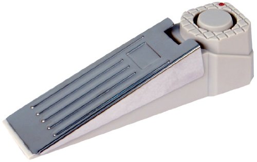 Simply place the alarm behind any door. If an intruder attempts to open the door, the wedge-shaped design will prevent it from opening and activate a 120 dB alarm. The alarm will scare off the would-be intruder and alert you to the attempted entry. There is also a movement sensor with adjustable sensitivity which sets off the alarm if anyone tries to tamper with it. When traveling, just toss this lightweight unit in your luggage. The on/off switch will prevent the unit from accidentally sounding. Requires one 9 volt battery that is not included. Measurements are 6 3/8" x 1 3/4".