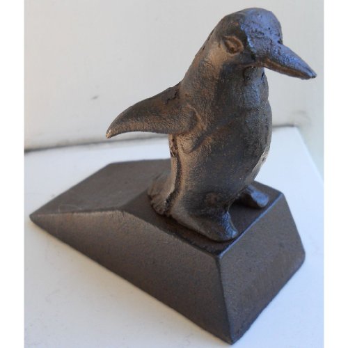 Penguin Door WedgeUnique design featuring a penguin atop the wedgeNicely done in our popular rust finishAn attractive door accessoryMeasures 4"H x 4.5"L x 1-7/8"W